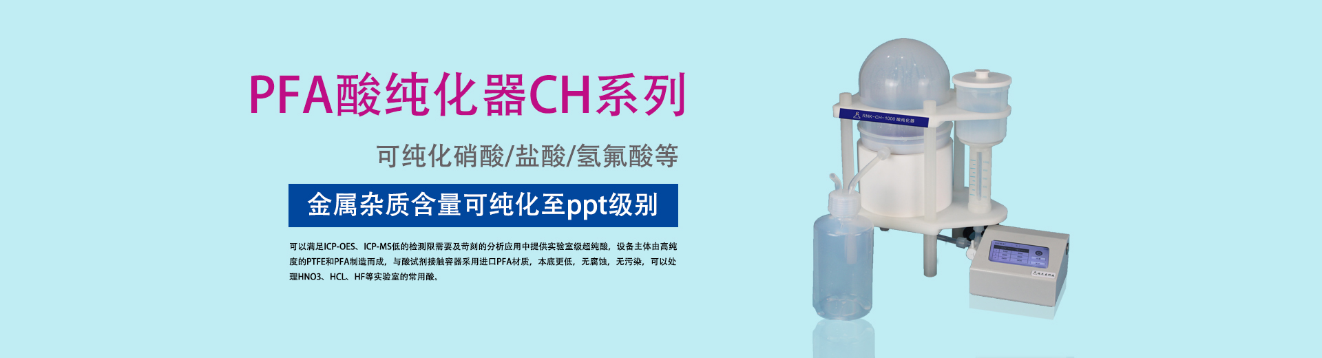 南京瑞尼克科技開發(fā)有限公司位于六朝古都南京,邁皋橋創(chuàng)業(yè)園內,是一家集生產,研發(fā),銷售為一體的現(xiàn)代化企業(yè),公司擁有專業(yè)知識*的技術研發(fā)團隊,整潔明亮的廠房及先進的技術儀器設備,技術力量雄厚。公司長久以來一直堅持以生產研發(fā)高質量的痕量分析器皿為目標,客戶滿意的實驗需求是我們永遠的追求。我們一直堅持“專注品質,客戶至上"為經營理念,長久以來與客戶建立了良好的合作關系,在同行業(yè)中建立了自己的信譽與品牌。公司將一如既往的奮進不息,為客戶帶來更為舒心的服務!研發(fā)生產:痕量分析器皿—PFA、FEP、PTFE系列產品,高壓消解罐,消解器,水熱合成反應釜,酸純化器。...